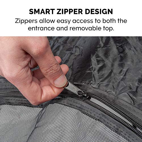 The Furhaven light-weight Indoor/Outdoor Mesh Open-Air Playpen & Exercise Pen Tent House Playground allows pets to play in a contained area; features a removable top, 360-degree open-mesh view, and zippered side entrance. The pet playpen keeps your pets safely with you while at the park, beach, and inside or outside your home. Easy-open, pop-up assembly and ground stakes for a safe, secure play area. Playpen folds back easily into the included carry bag. Large open-air mesh screened windows provide a deluxe 360-degree view, and lots of fresh air. The top is fully zippered and removable, and the six side panels form a circular shape. A large zippered side-panel entrance has a fabric tie-up letting pets easily enter and exit. Easy to clean; just spot-wash with cloth and mild detergent, towel or air dry.