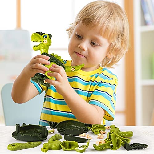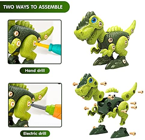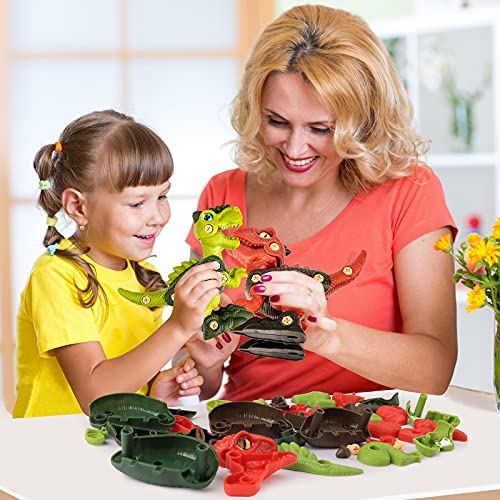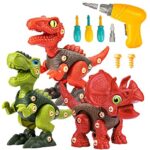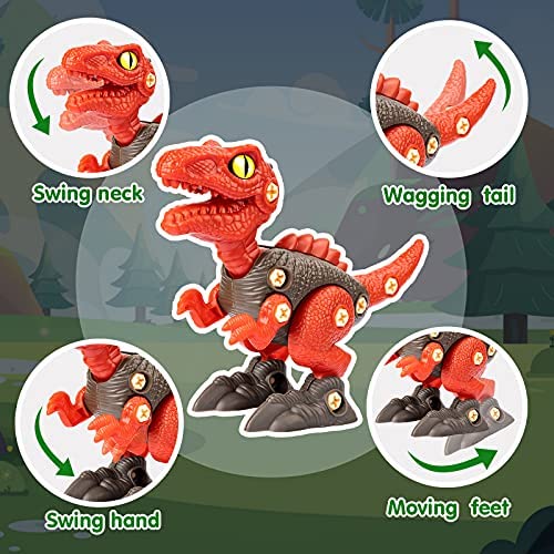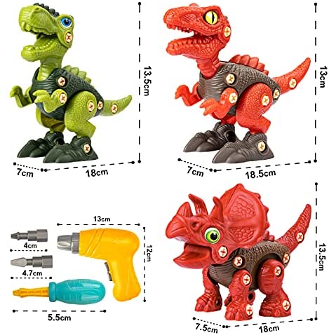 【DIY Take Apart Dinosaur】 Three dinosaur toys includes orange Tyrannosaurus Rex, red Triceratops, green Velociraptor can be taken apart and assembled. Simulation design and clear textures make dinosaurs more realistic.